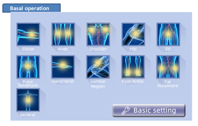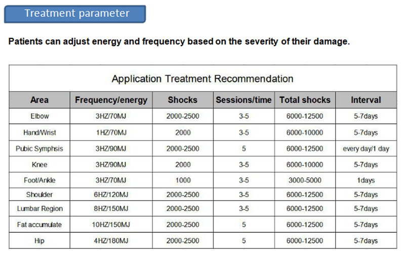 3.Set suitable frequency (the max range is 1HZ-16HZ) and energy (the max range is (10MJ-250MJ). For ED treatment, the frequency range is 1-10HZ and the energy range is 10MJ-150MJ.