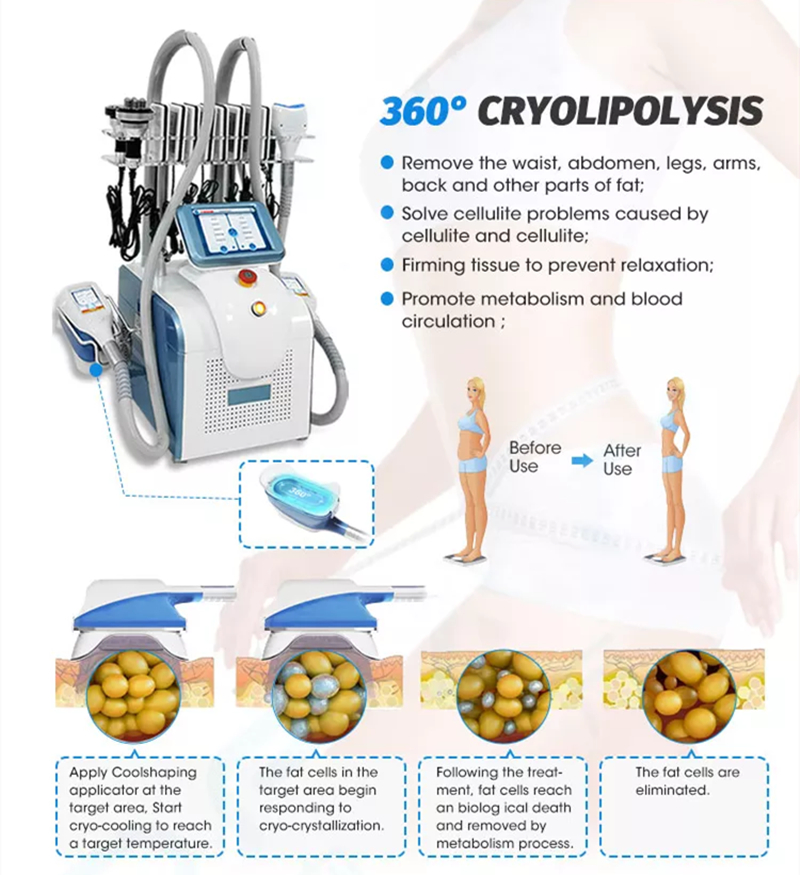 The principle of freezing fat solution is by cooling the subcutaneous tissue to below 35 DEG C, which can selectively affect the subcutaneous lipid rich cells, and the highly saturated fatty acids are locally crystallized. The crystals break into double membranes rich in lipid cells, which selectively cause necrosis of these cells. The frozen fat dissolving technique can reduce the number of human lipid cells and control the degree of obesity.