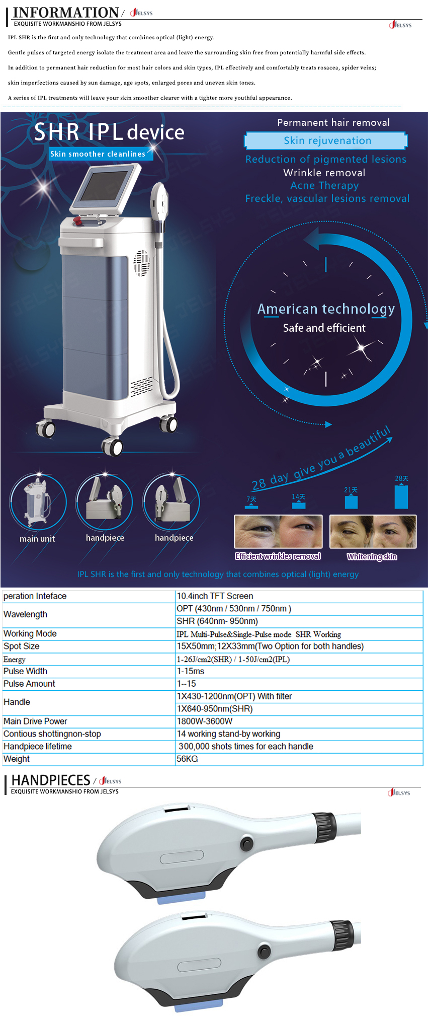 Energy | 1-26J/cm2(SHR) / 1-50J/cm2(IPL) |