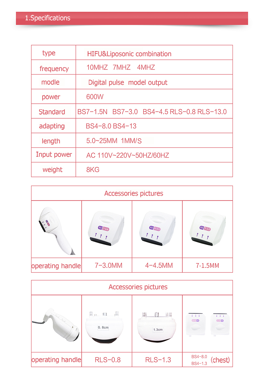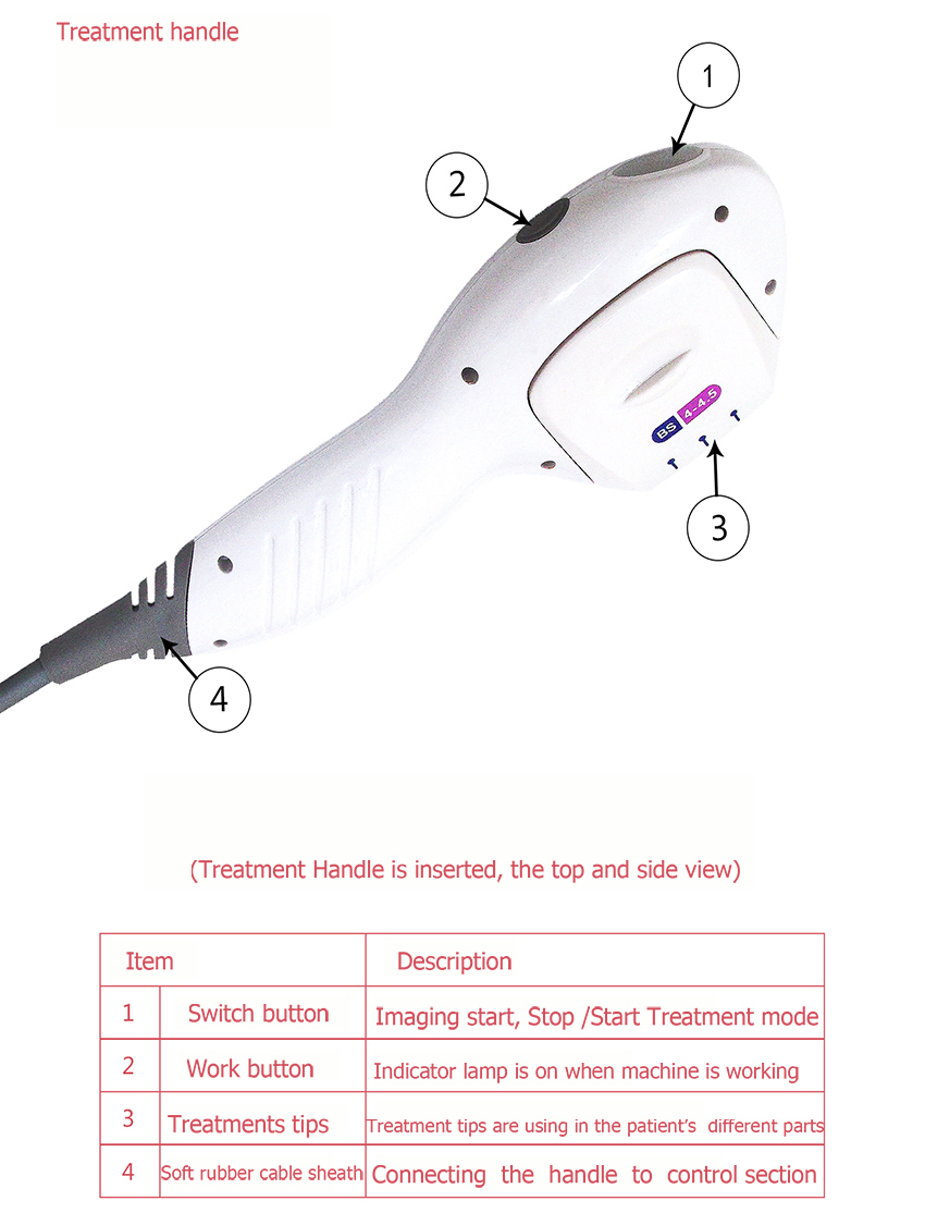 Treatment heads | 3 hifu heads(1.5mm,3.0mm,4.5mm) |