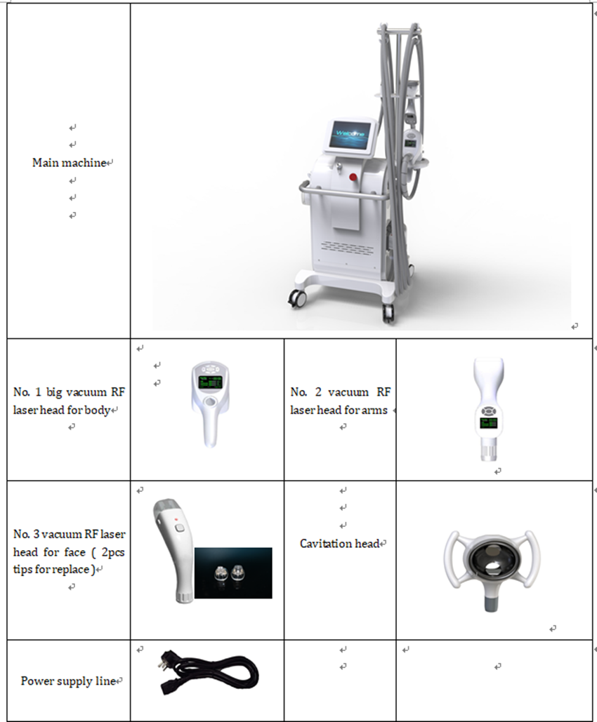 Packing list | No. 1 big vacuum RF laser head for body * 1 |